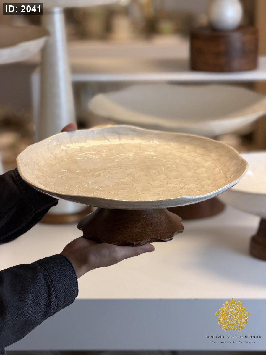 جاط مدور عاجي مع قاعده خشب