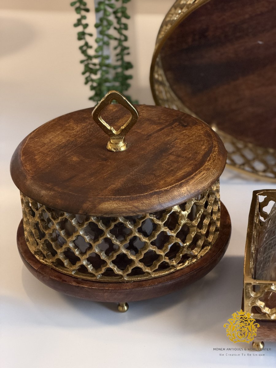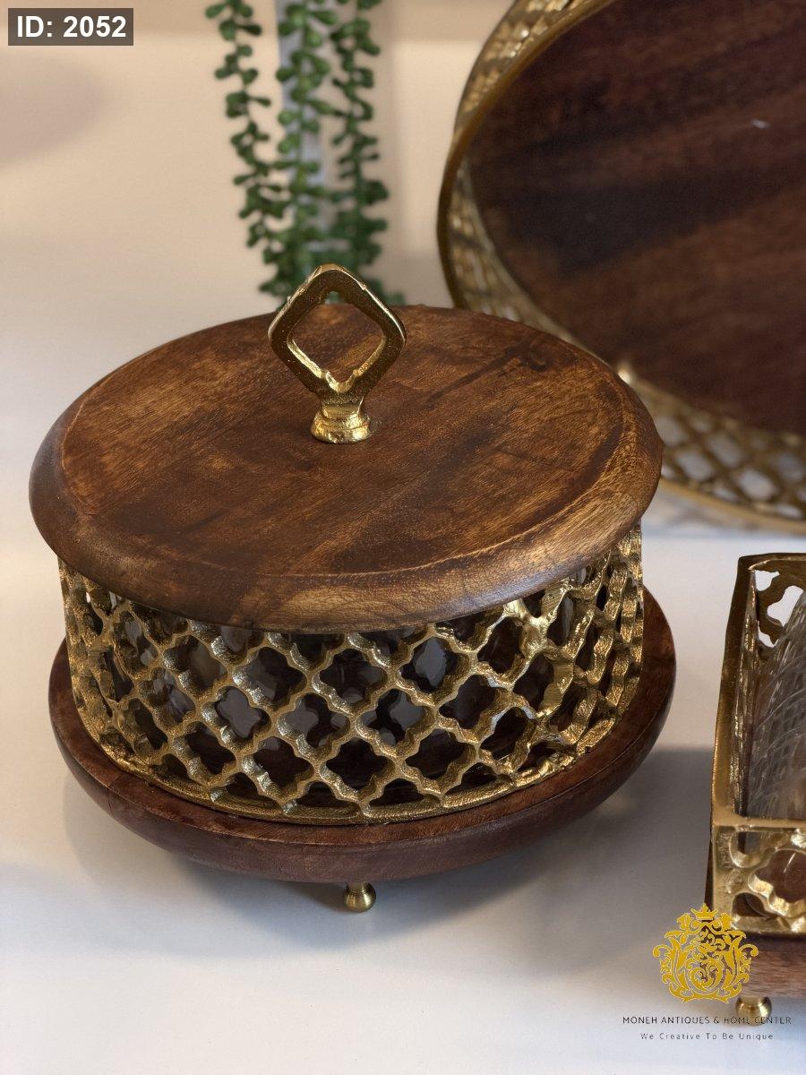 مضيفة خشب هندي مشبك مع زجاج داخلي