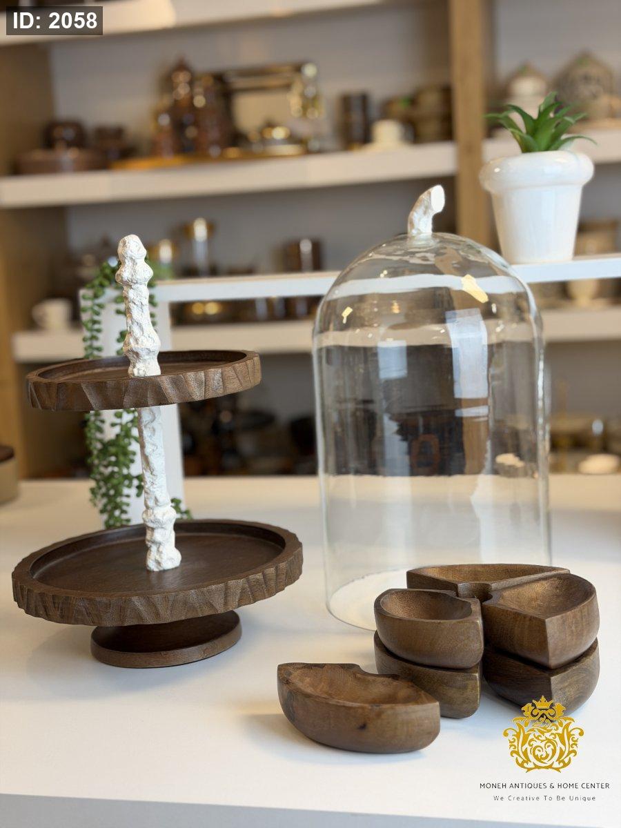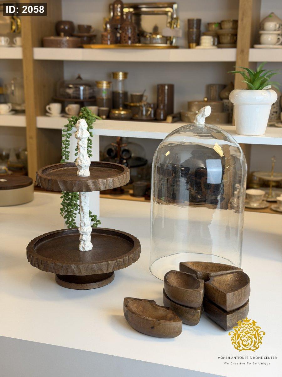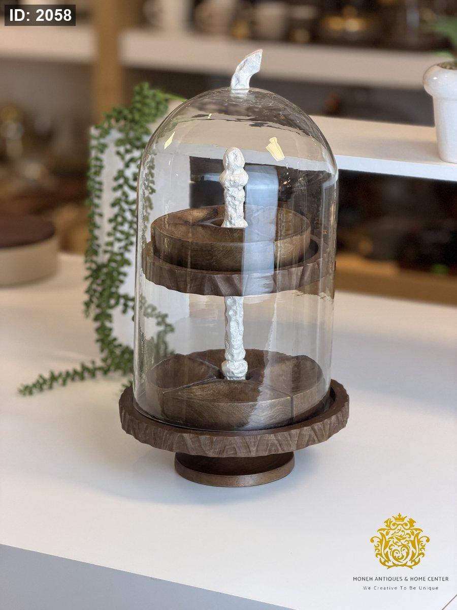 مضيفة طبقات مع غطاء زجاج وصحون متحركه