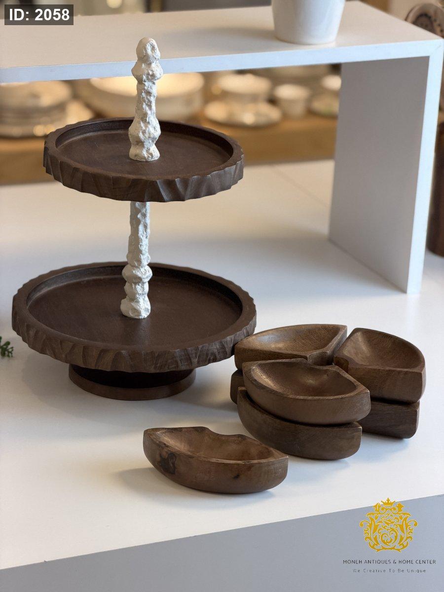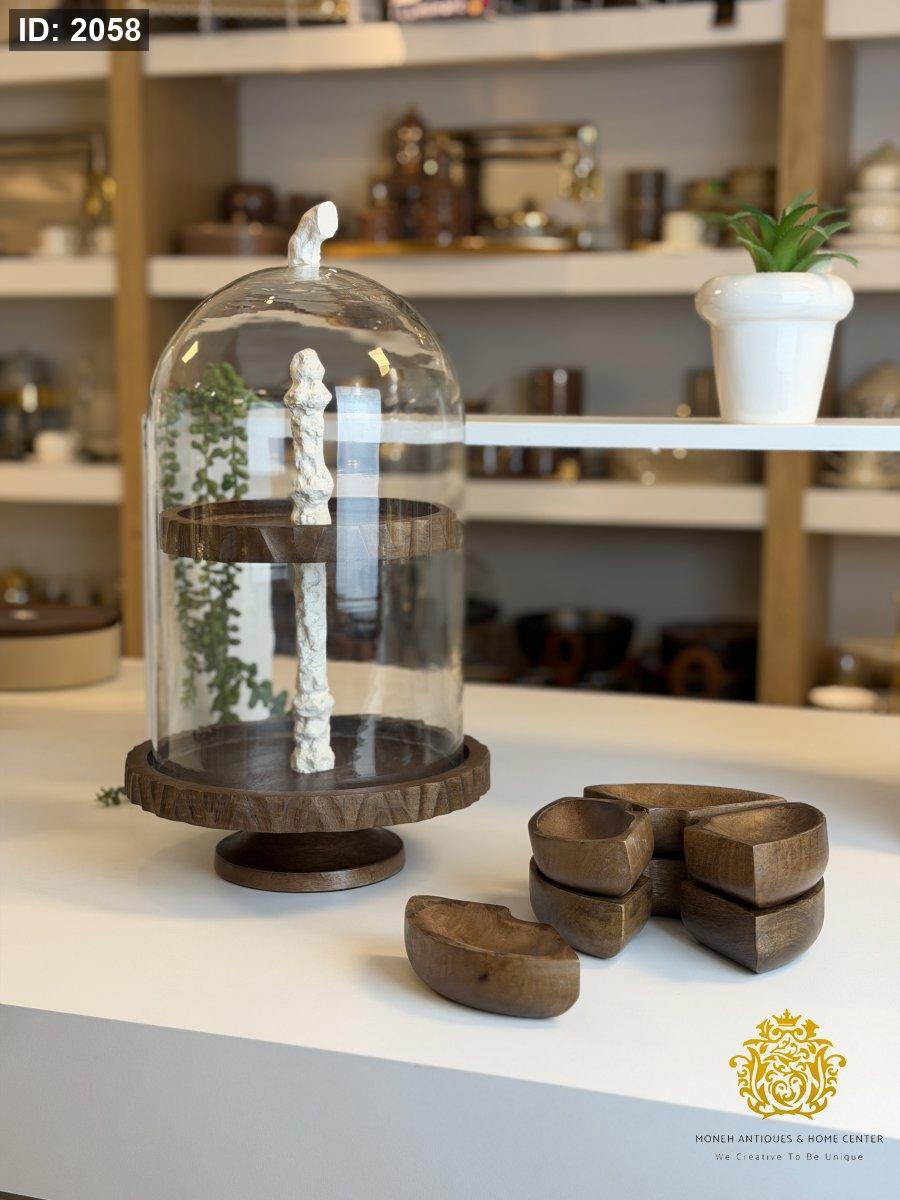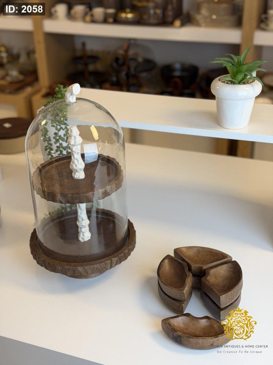 مضيفة طبقات مع غطاء زجاج وصحون متحركه