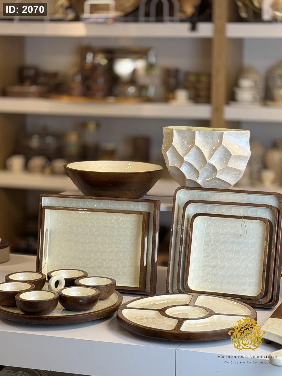 طقم صواني خشب مع ريزن مصدف