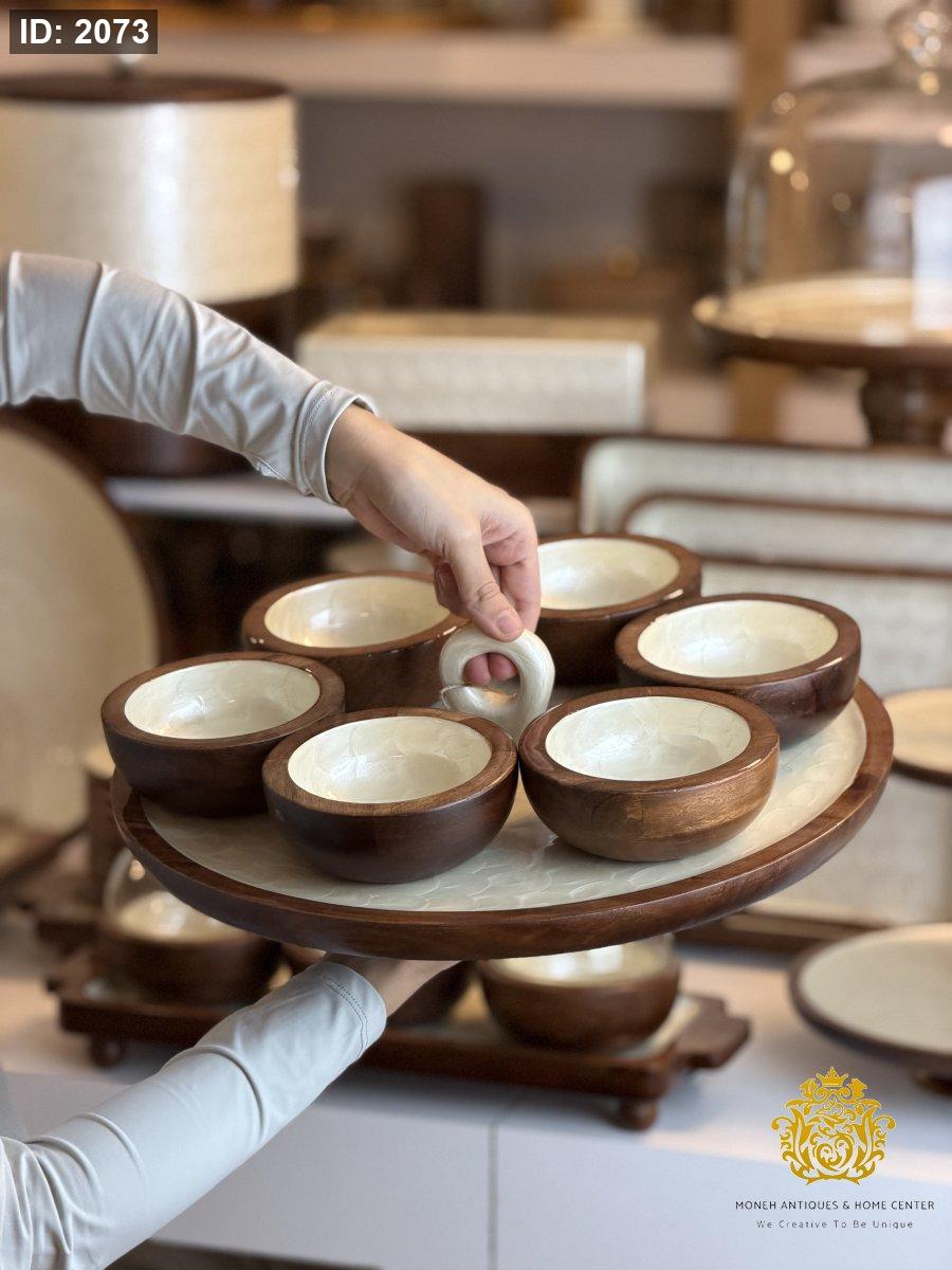 جاط مع ٦ صحون خشب مصدف ريزن قاعدة متحركه