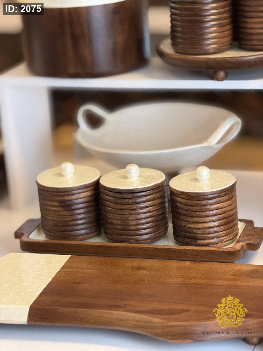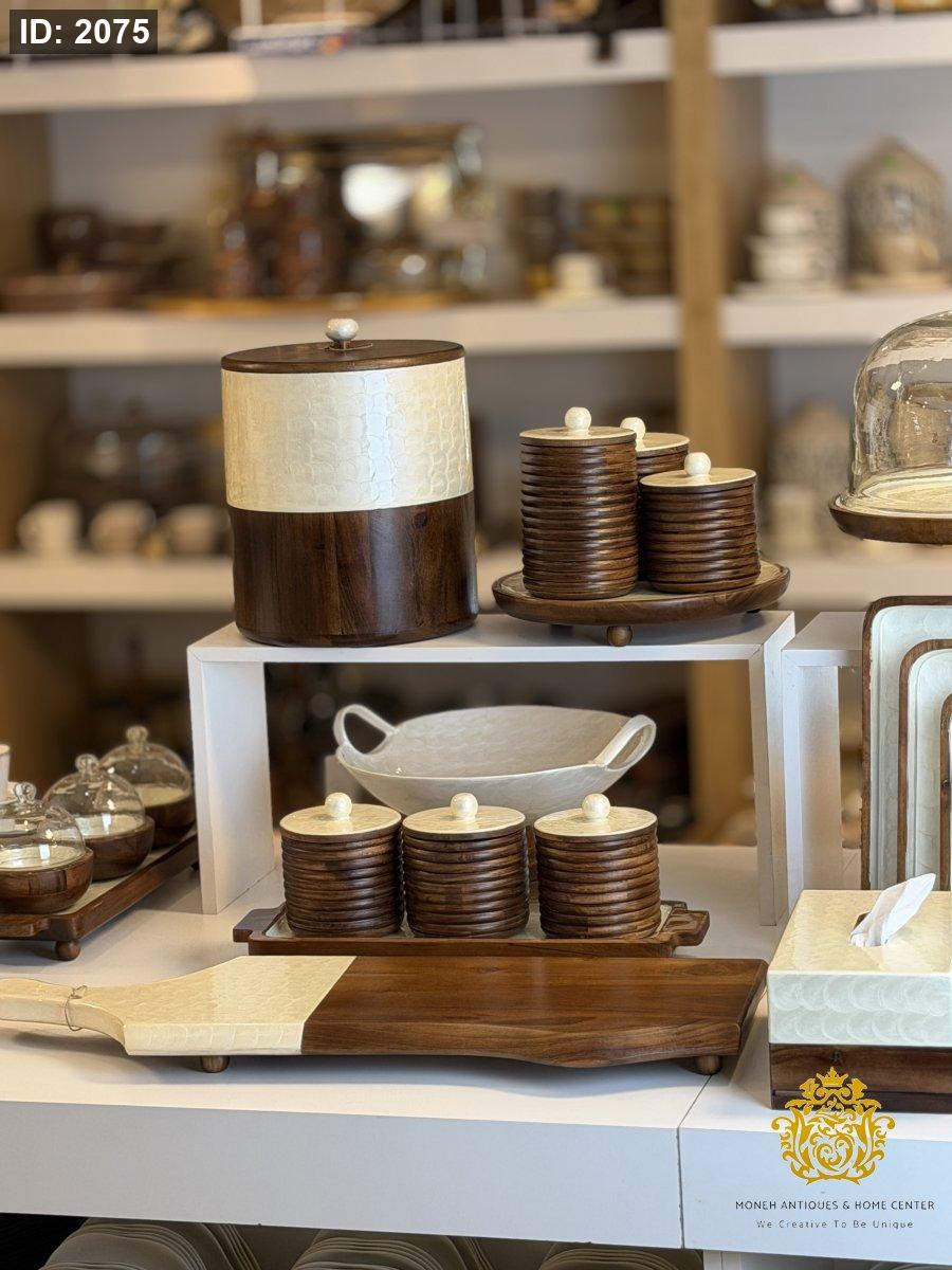 طقم سكريات مع قاعدتهم خشب مصدف ريزن