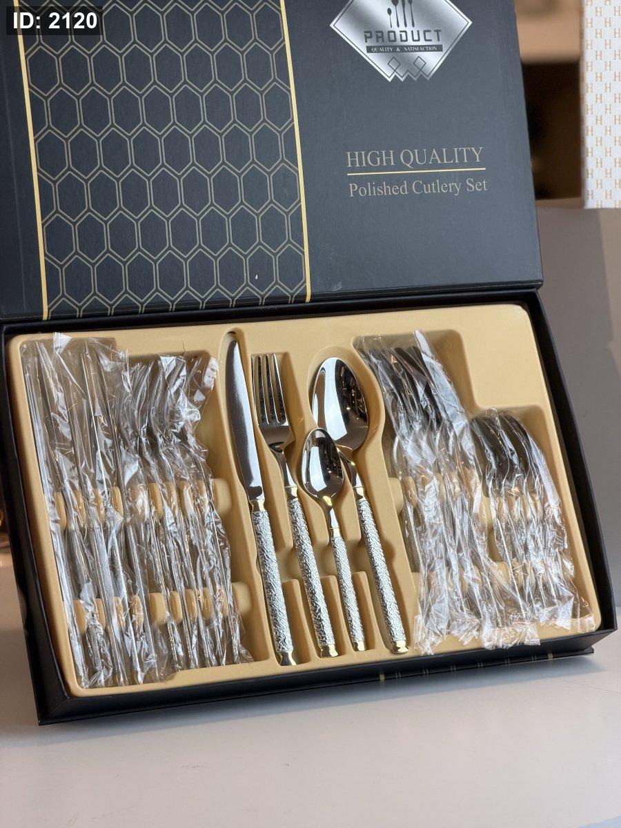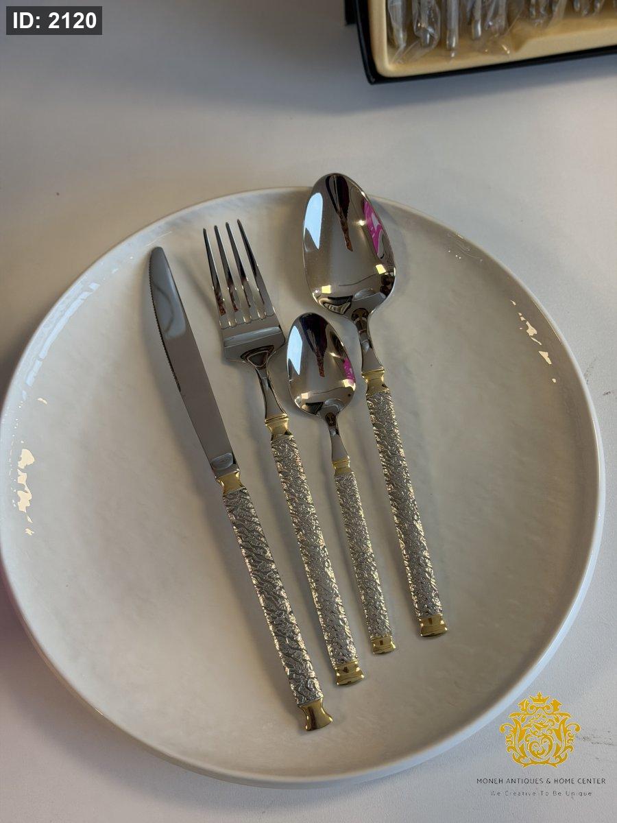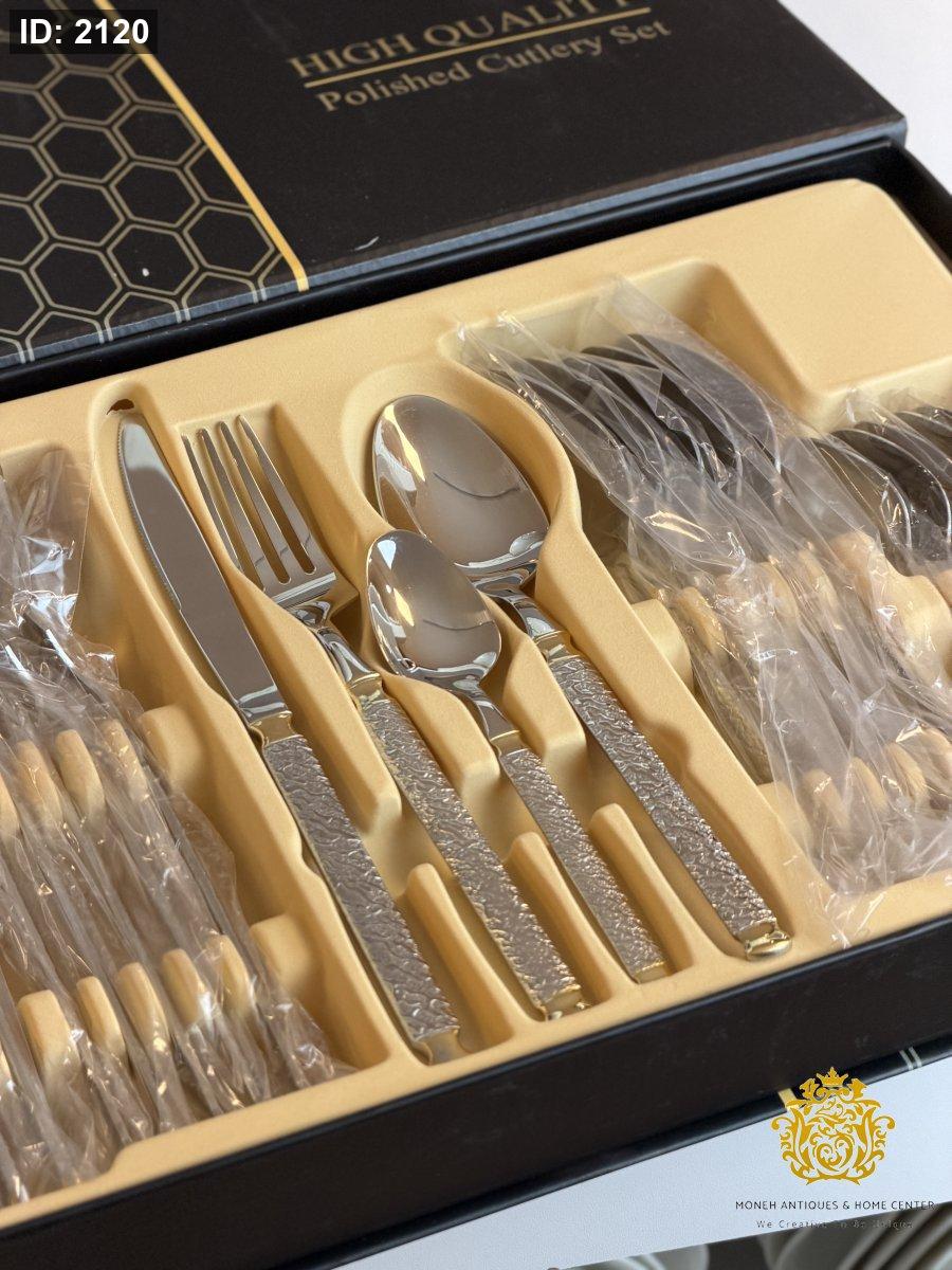 طقم معالق وشوك ٢٤قطعه فضي مع دهبي