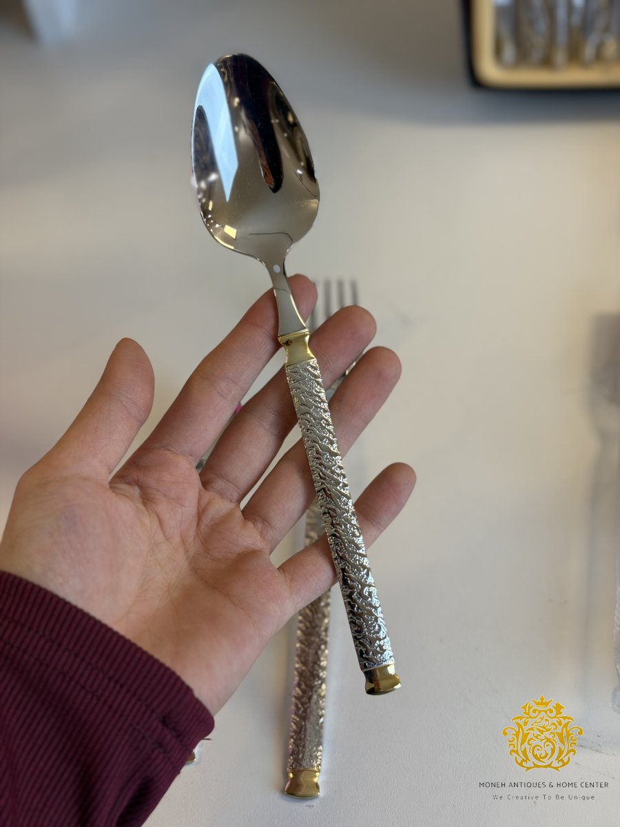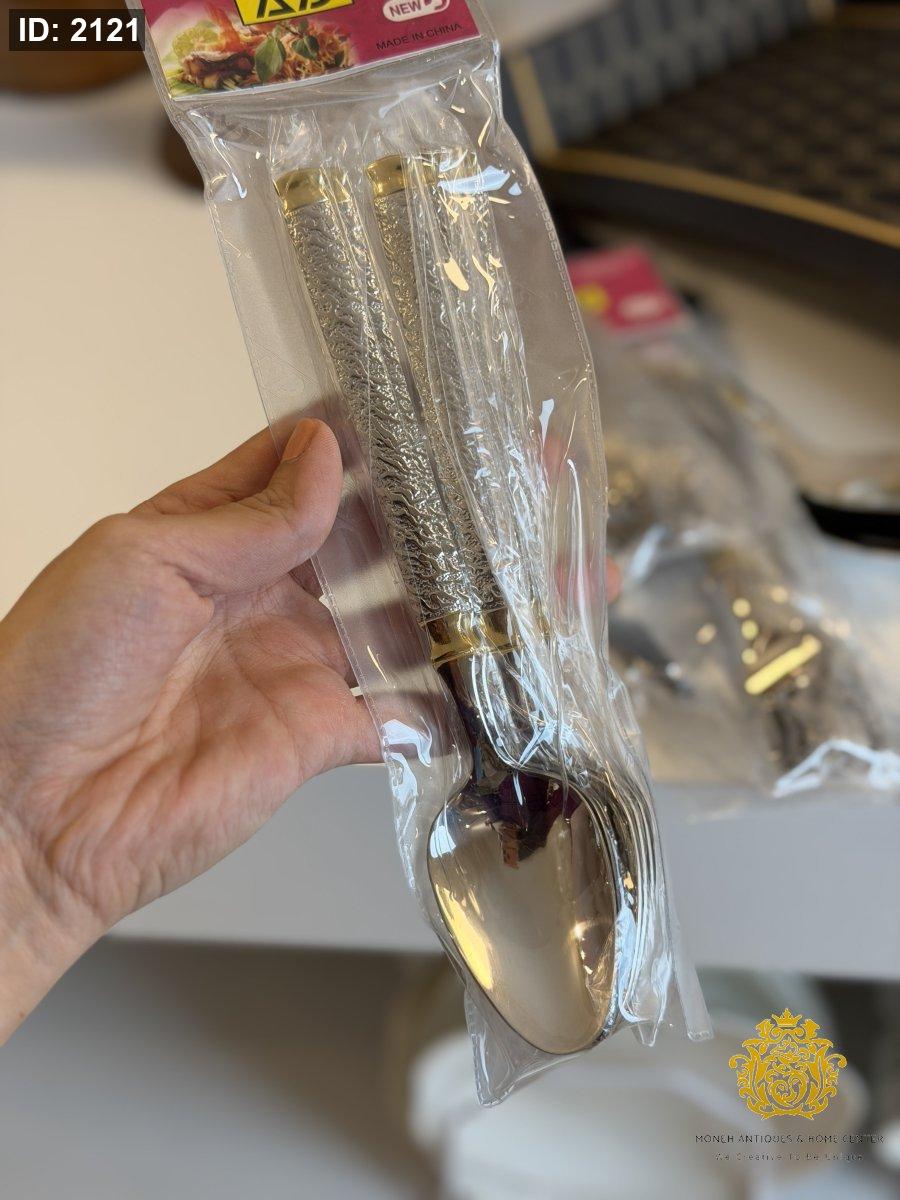 طقم معالق كبير/٦ فضي مع دهبي