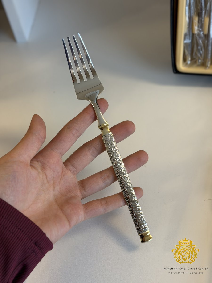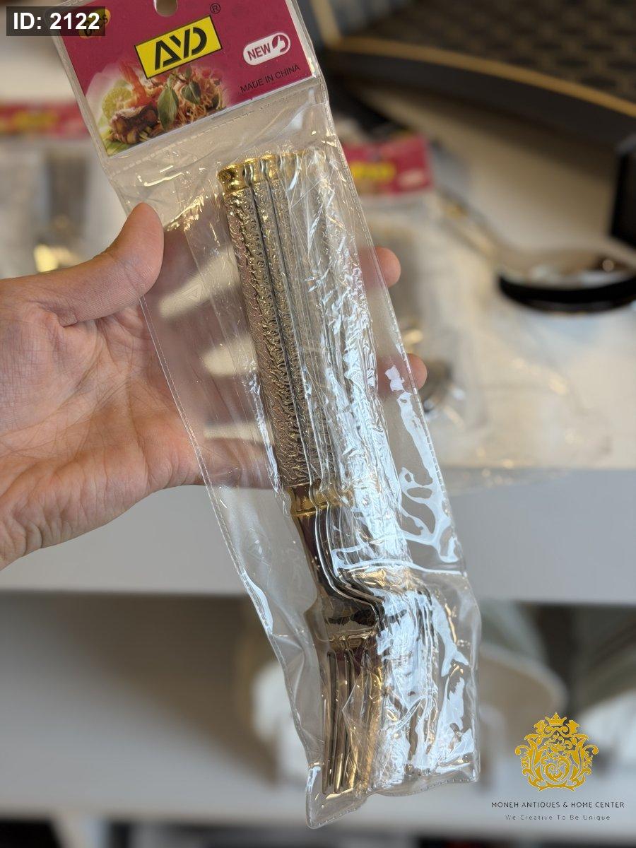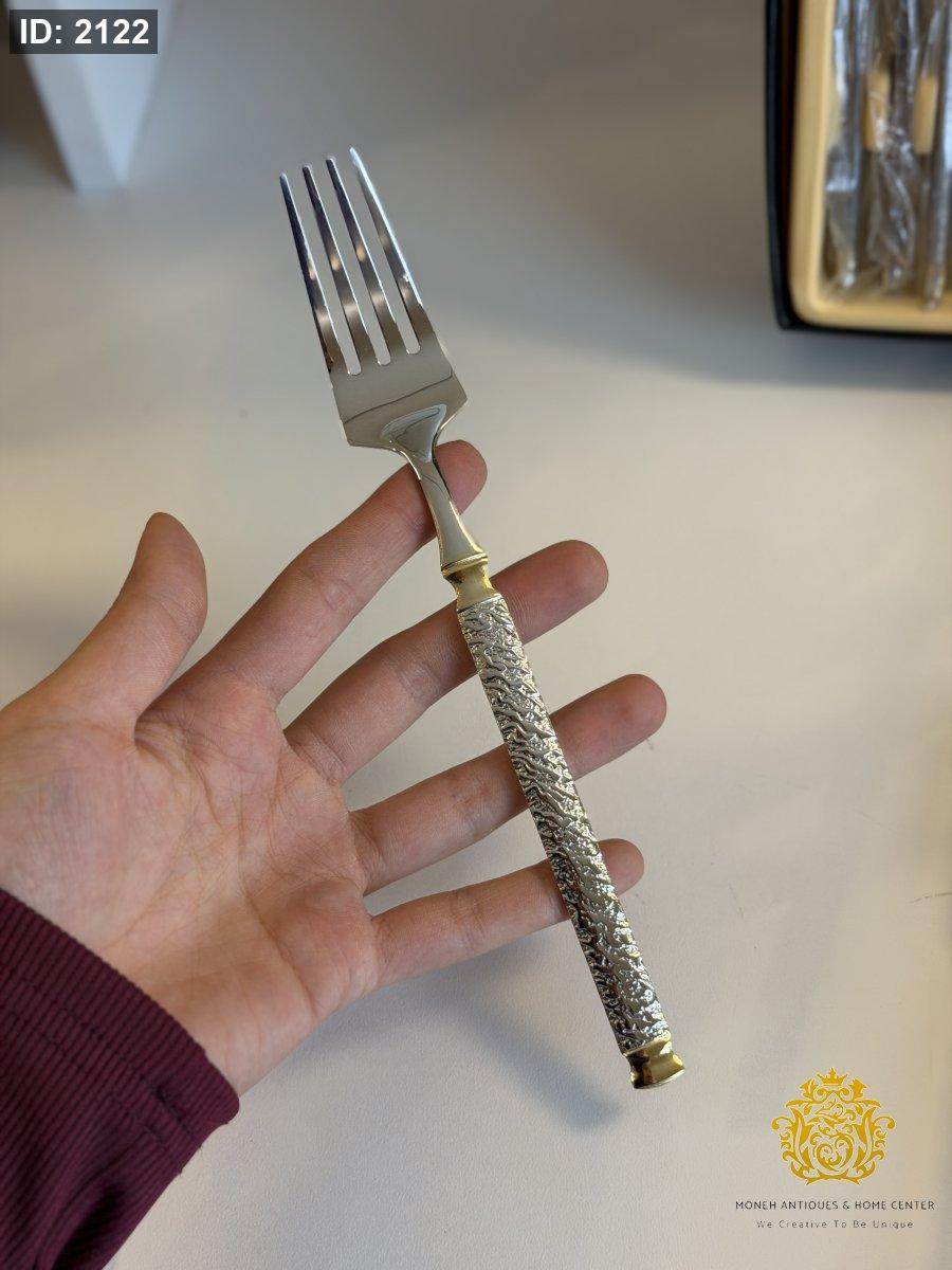 طقم شوك كبير/٦ فضي مع دهبي