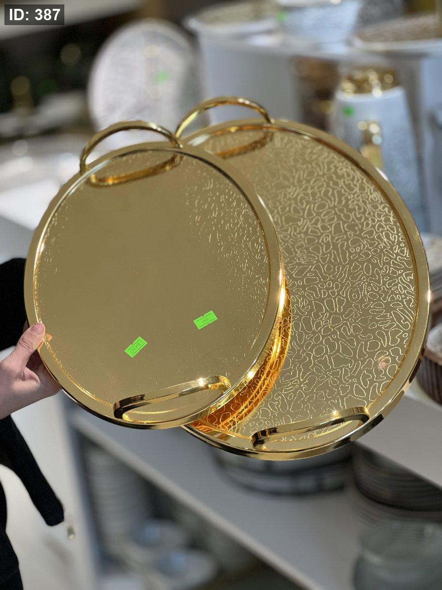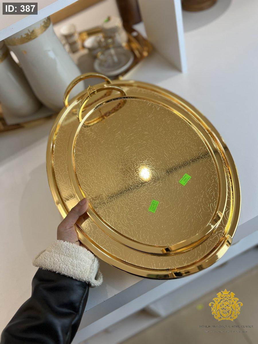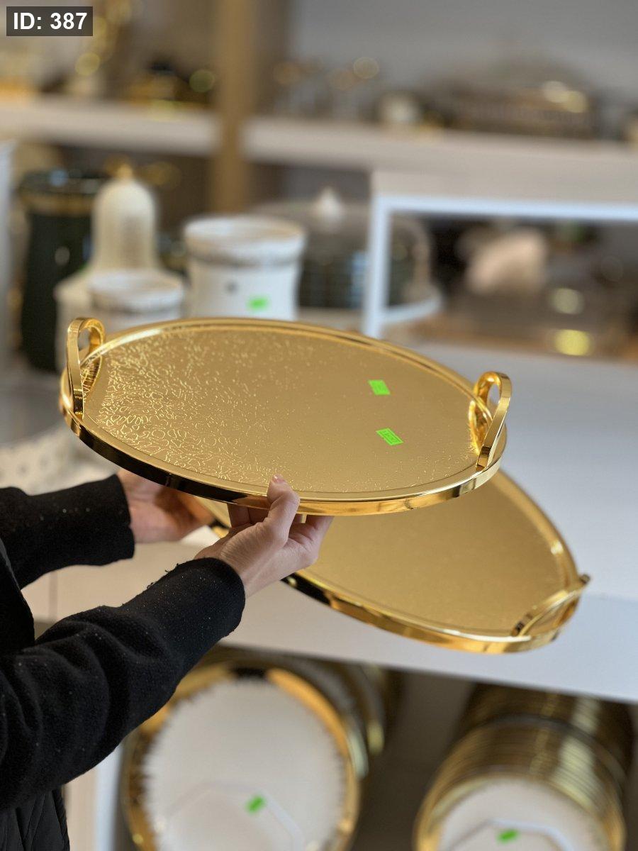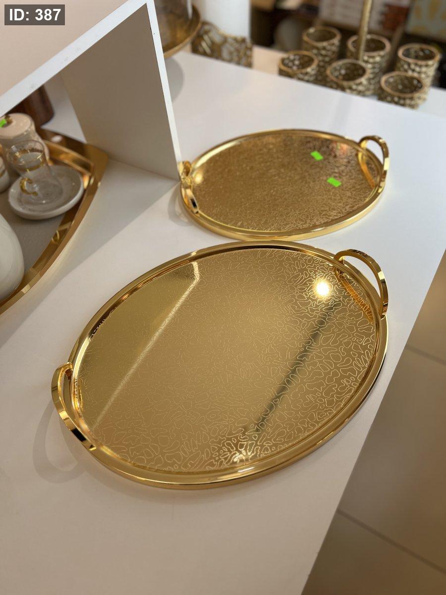 طقم صواني بيضاوي دهبي مكون من قطعتين