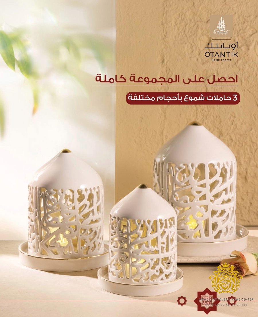 شمعدان إلكتروني من جوار تحفة فنية تضفي على منزلك إضاءة هادئة ومميزة، تتميز بتصميم تراثي متقن ونقوش مستوحاة من الخط العربي، مما يمنحه لمسة من الأناقة والفخامة