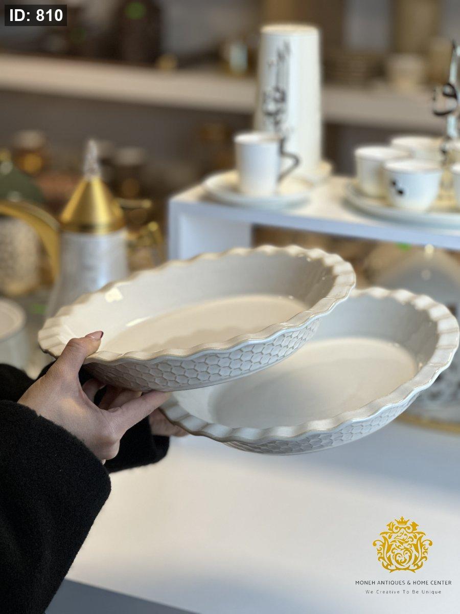 طقم جاطين بورسلان مدور مزخرف من الجنب وحجم وسط