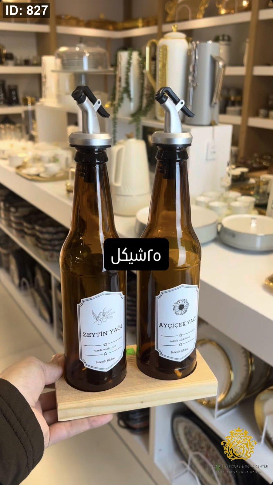 طقم مزيتة مع قاعدة باللون العسلي زجاج