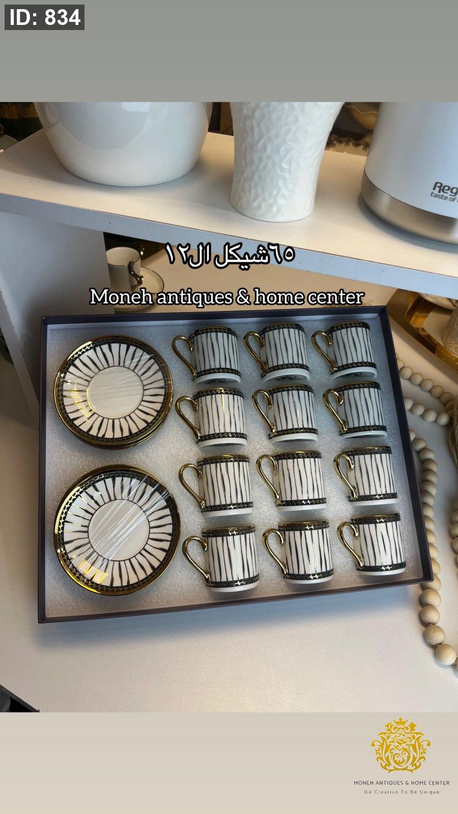 فناجين قهوة عدد 12 مخطط مدهب