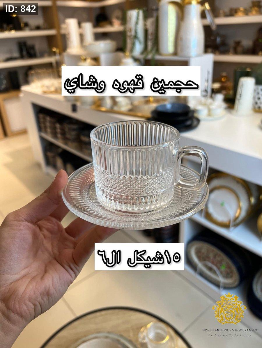 فناجين شاي او فهوة شفاف مبزر محزز عدد 6