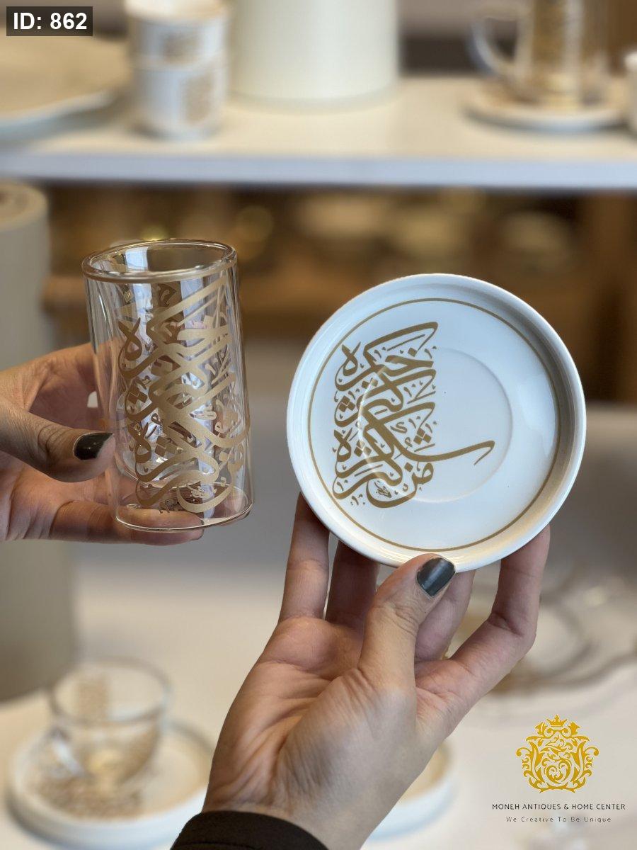 استكانة شاي دبل جلاس خط عربي مدهب عدد 6