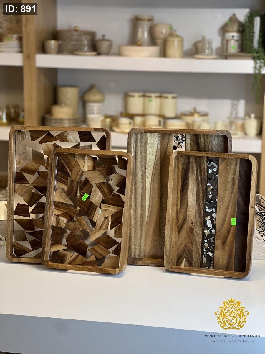 طقم صواني خشبية مزخرفة تقيل