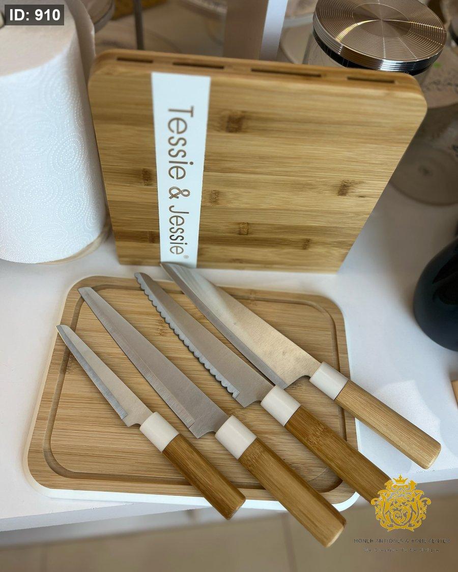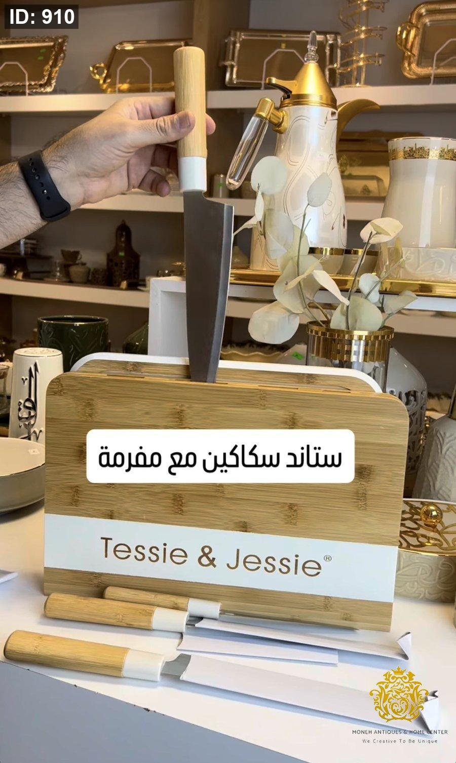 طقم مكون من مفرمة واربع سكاكين مع قاعدة نوعية ممتازة
