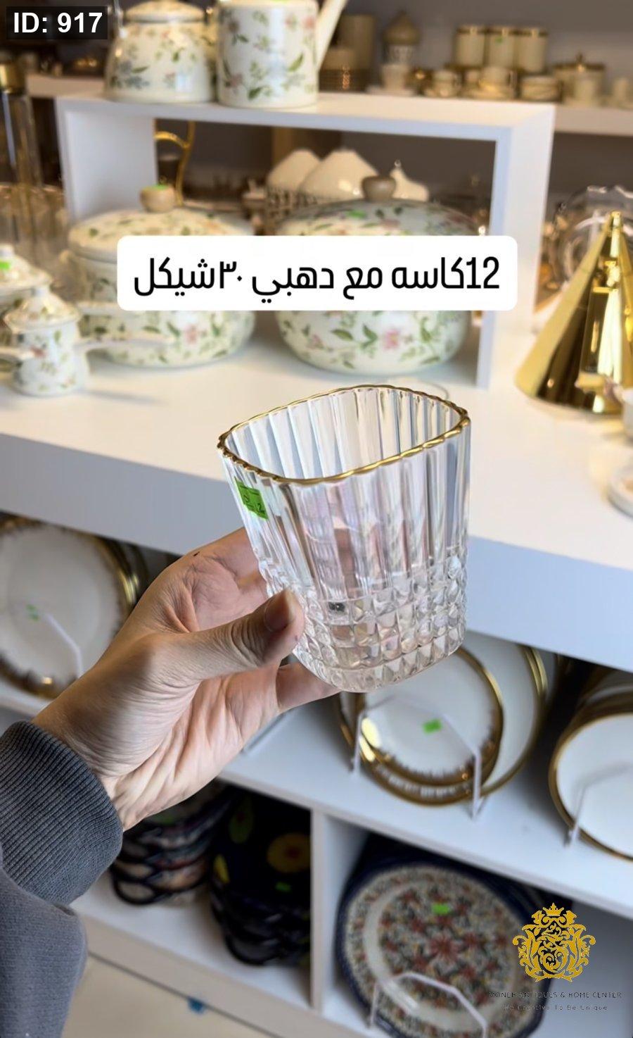 كاسات عصير محزز ومربع خط دهبي عدد 12
