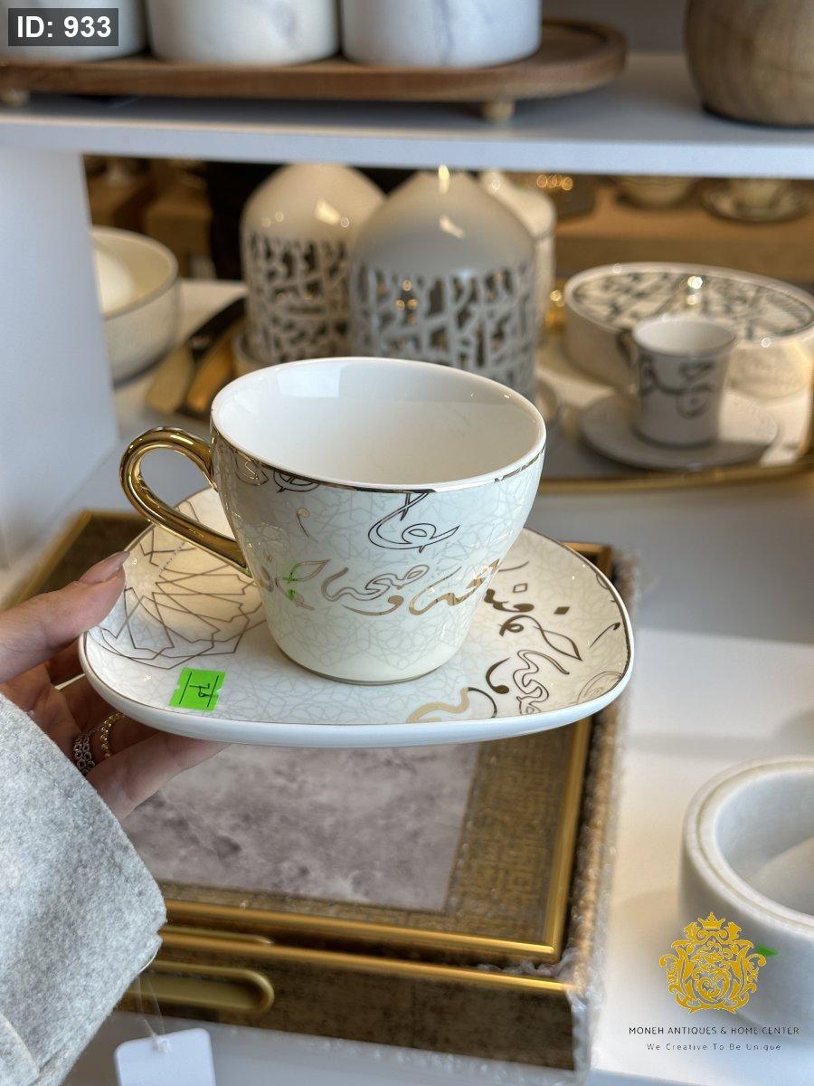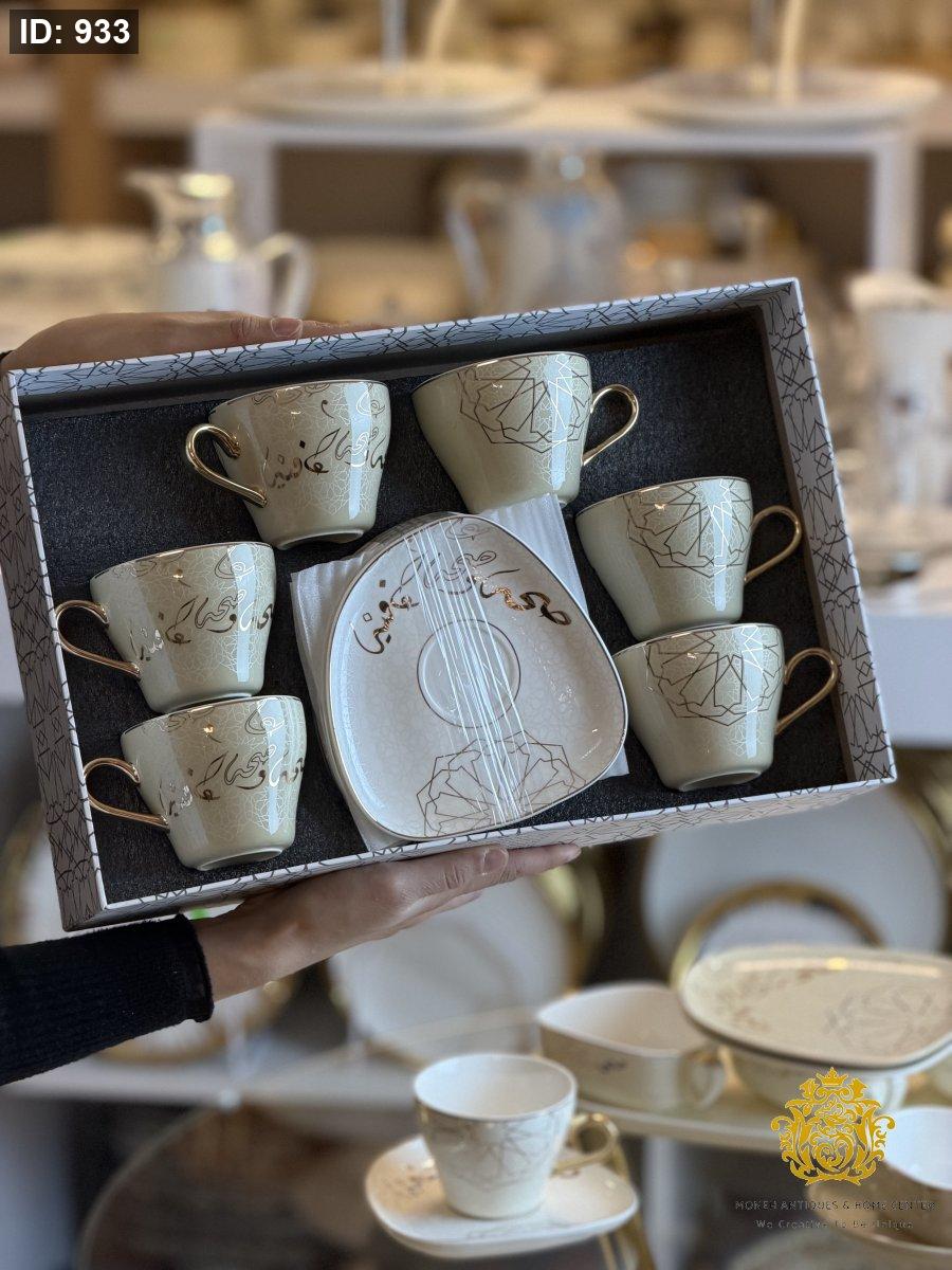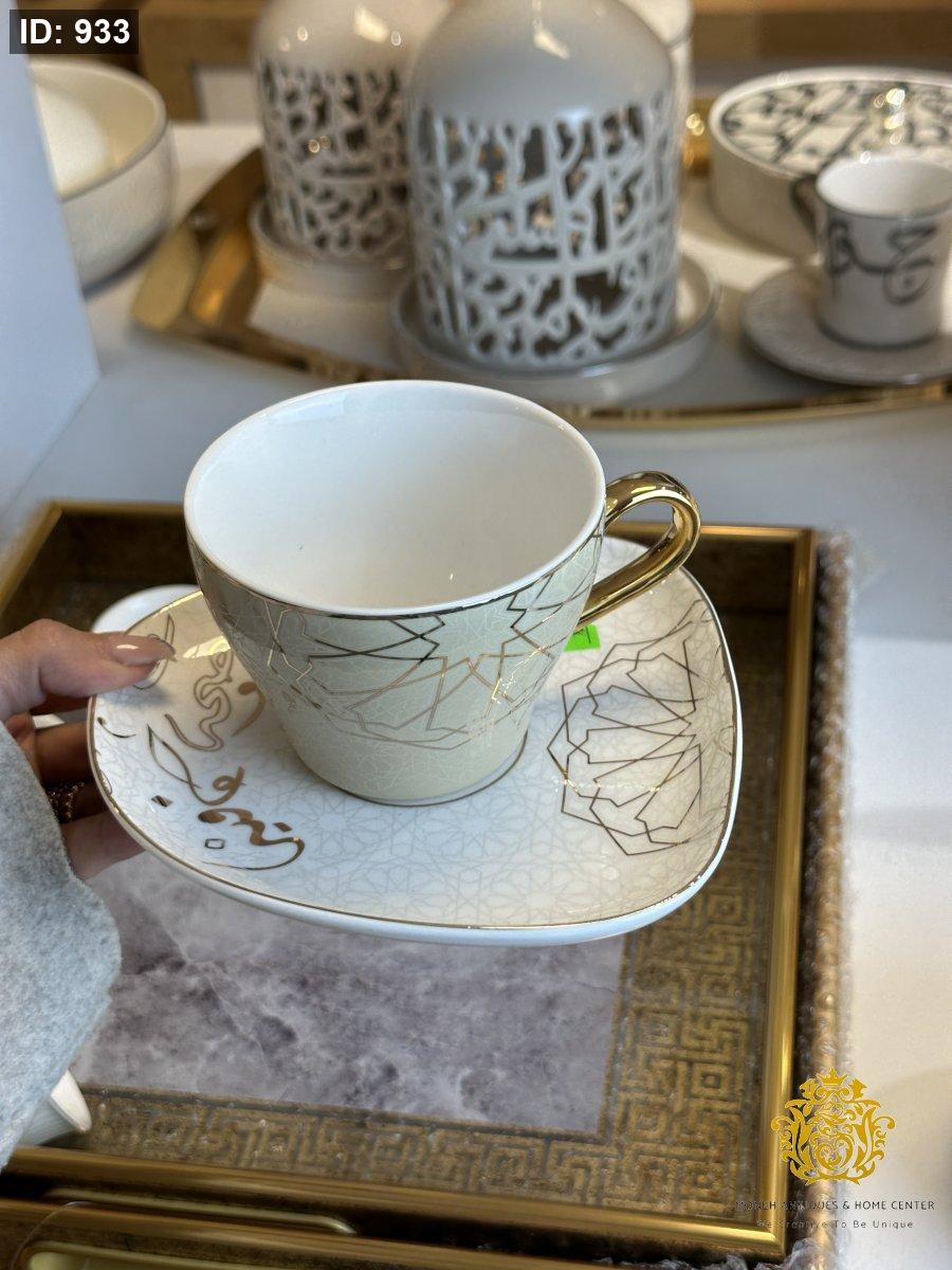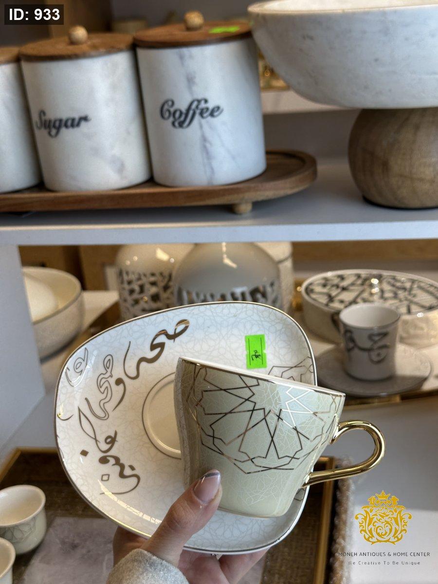 فناجين شاي عدد 6 اندلس كتابة مع زخرفة مدهب