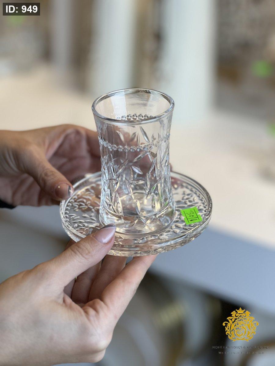 كاسات شاي مع صحون عدد 6 نخيل