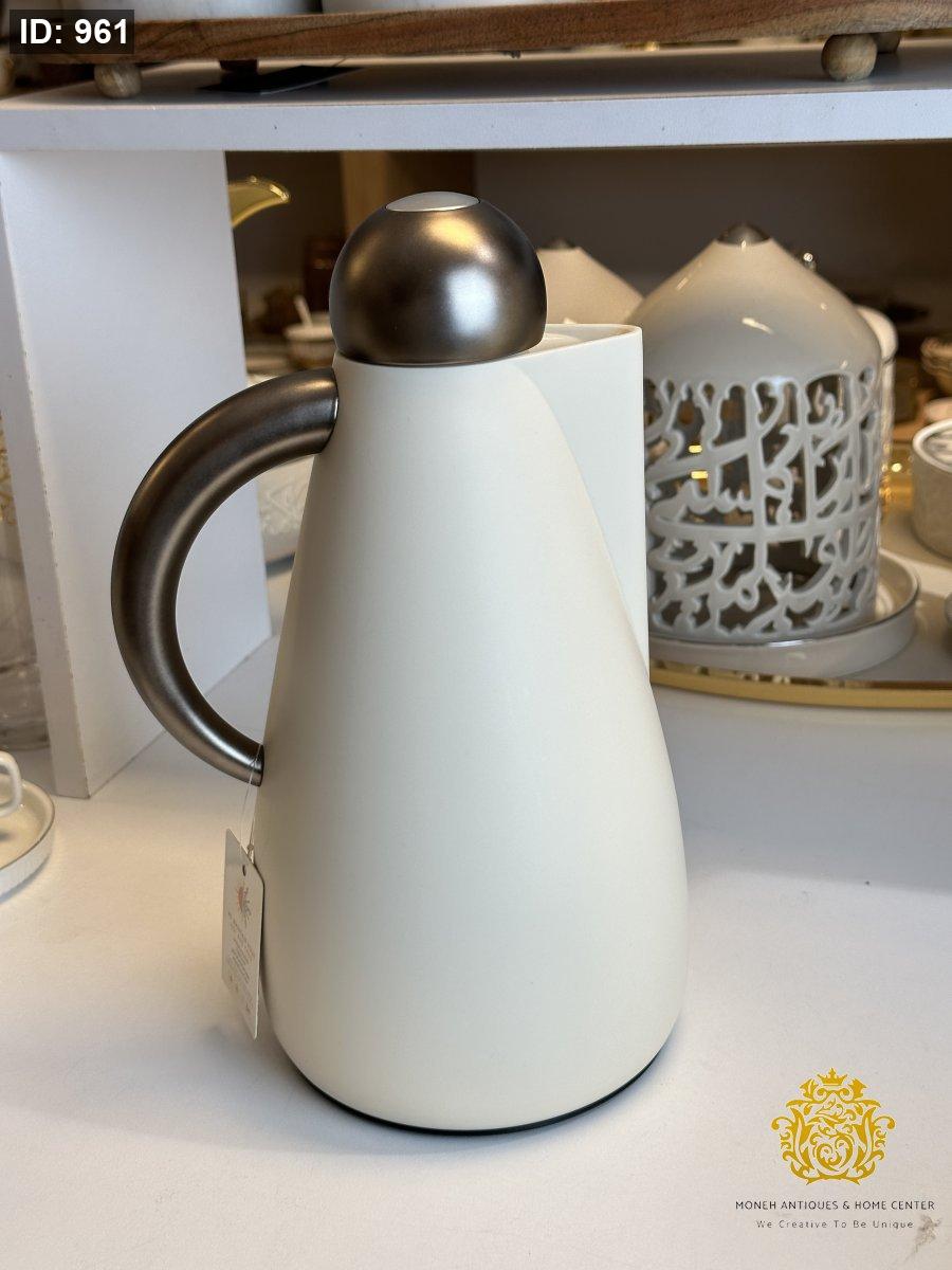 تيرموس قهوة ابيض غطاء فضي