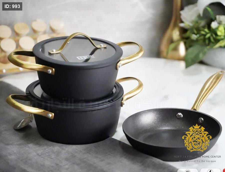 طقم NERO طنجرتين بحجم 25/20cm مقلى بحجم 24cm